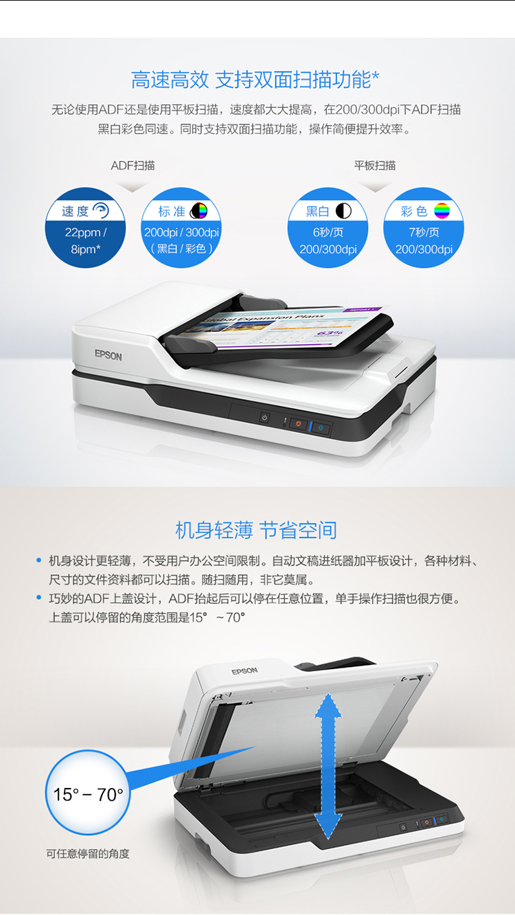 爱普生(EPSON) DS-1610 1660W A4 高速彩色文档扫描仪 自动进纸 DS-1610标配
