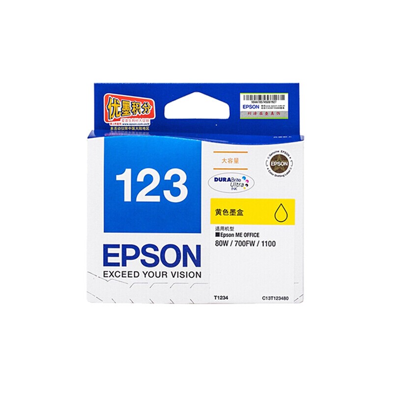 爱普生(EPSON)T1234 黄色墨盒 (适用ME 80W 700fw机型) 约875页