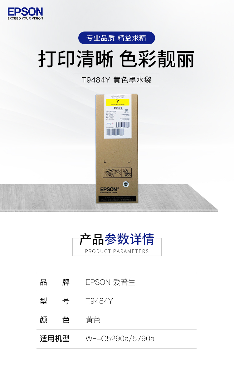 爱普生(EPSON)T9484Y 标准容量黄色墨水袋 (适用WF-C5290a 5790a机型)约3000页