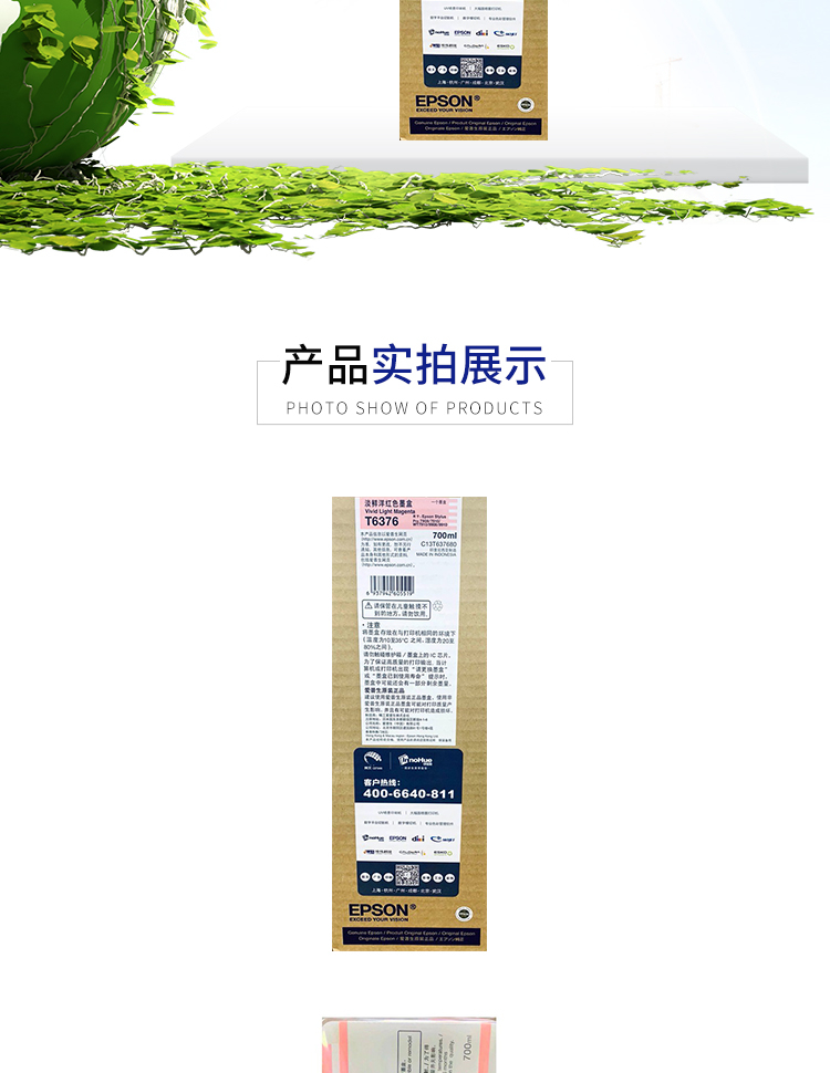 爱普生(EPSON)C13T637680 T6376淡鲜洋红色墨盒 VLM 700ml 适用Epson Pro7908 9908 7910 9910