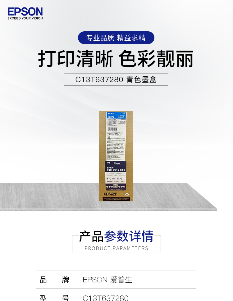 爱普生(EPSON)C13T637280 T6372青色墨盒 Cyan 700ml 适用Epson Pro7908 9908 7910 9910